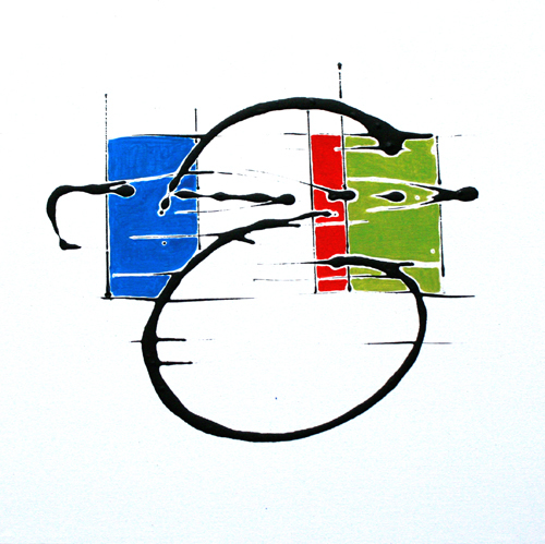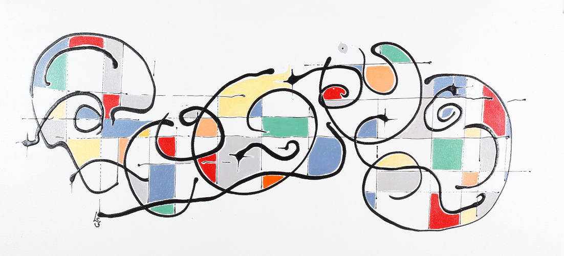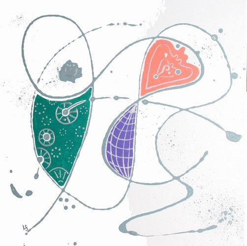 Using acrylics and striving for a balance between happy occurrence and imposed order each Rhythm & Hues piece is lightly constructed with a big touch of whimsy and a hint of Miro.
